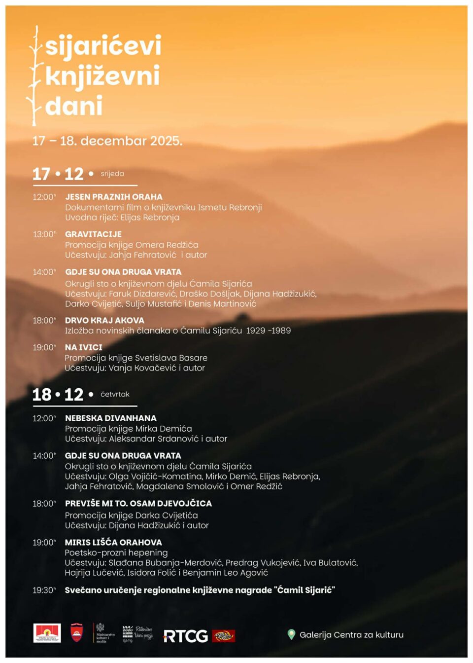 СИЈАРИЋЕВИ КЊИЖЕВНИ ДАНИ, Бијело Поље, 17-18. 12. 2025.